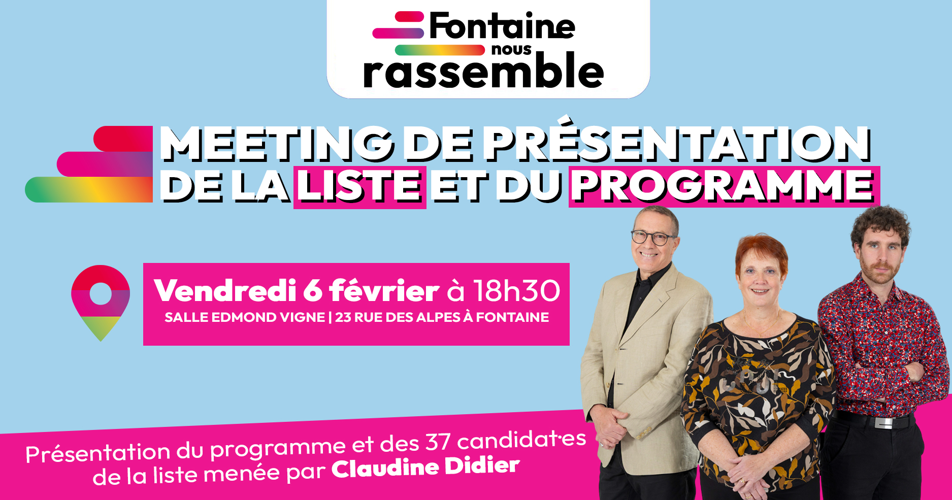 A l’inverse, nous souhaitons mener des politiques sociales, éducatives solidaires en faveur de la jeunesse, des enfants, des familles, des séniors et des plus vulnérables. Nous souhaitons également retrouver des équipements municipaux à la hauteur des besoins des Fontainois·e·s, en particulier en termes de santé et de culture, garantir la propreté urbaine et la tranquillité publique. Enfin nous travaillerons avec les autres communes de la Métro au bénéfice de toutes et tous, notamment pour favoriser les mobilités douces et un urbanisme accessible, solidaire et durable face au changement climatique.