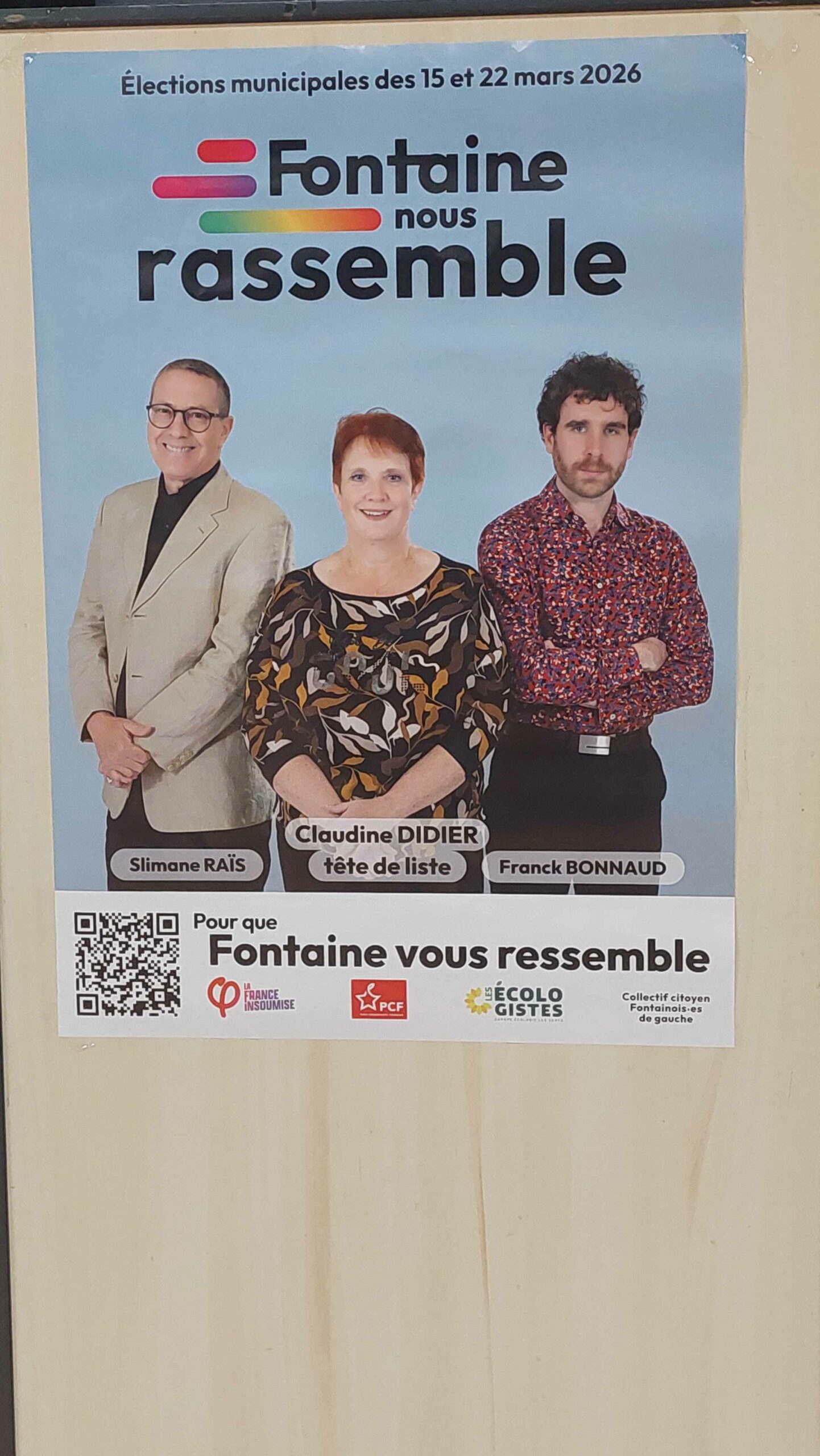 C’est devant un public nombreux et attentif que le meeting de présentation du programme et des candidat.e.s de la liste « Fontaine nous rassemble » s’est déroulé le 6 février 2026 à la salle Edmond Vigne.