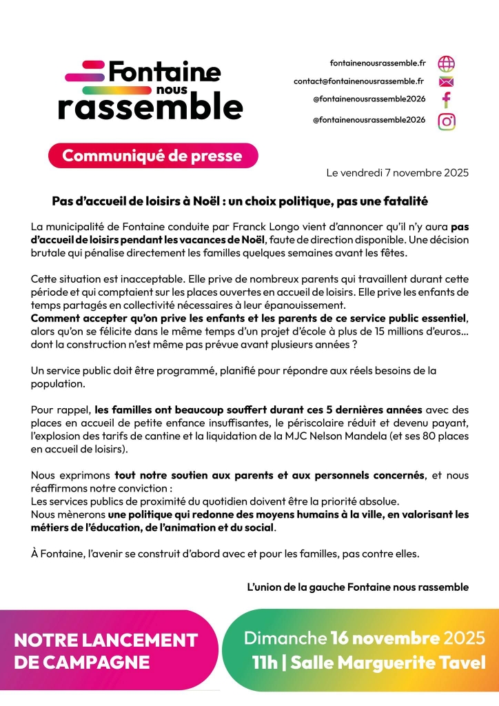 Communiqué de Presse sur la fermeture des accueils de loisir