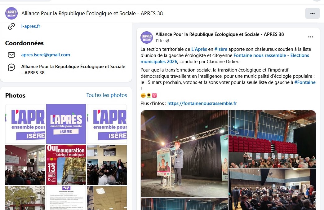 La section territoriale de L’Après en #Isère apporte son chaleureux soutien à la liste d’union de la gauche écologiste et citoyenne Fontaine nous rassemble, conduite par Claudine Didier.