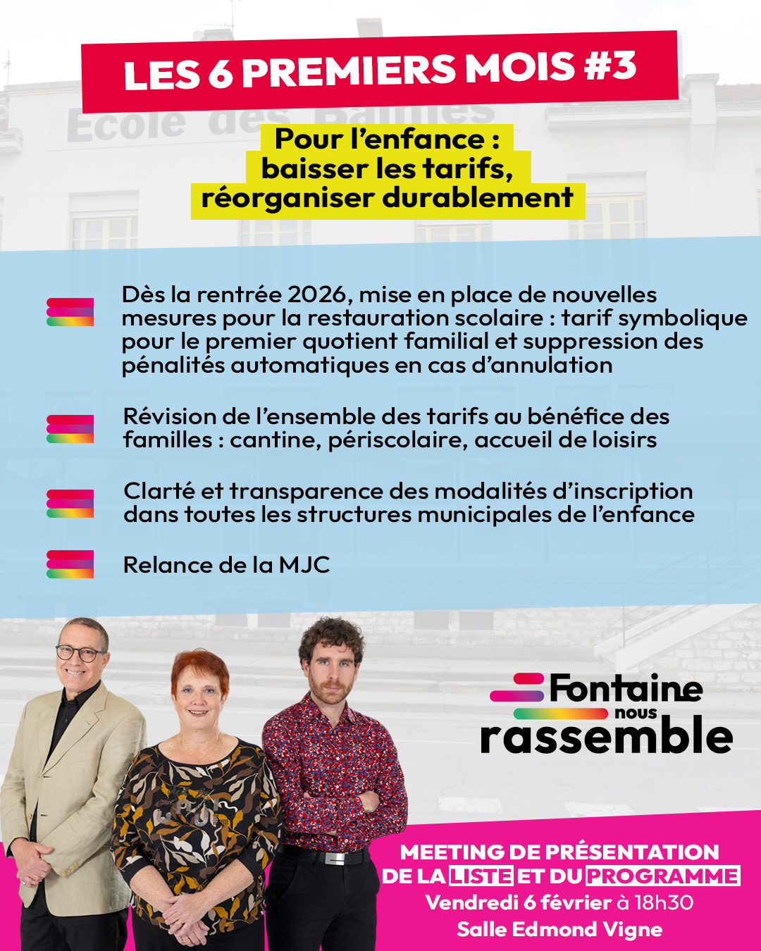 Nous reverrons la tarification de la cantine, du périscolaire et des accueils de loisirs pour réduire la charge pour les familles.