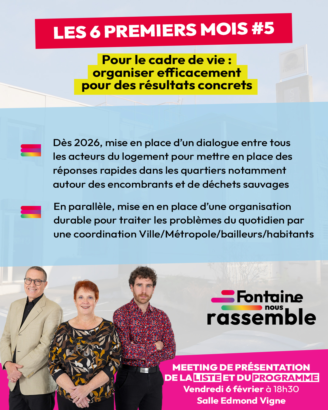 Dès la rentrée 2026, nous remettrons autour de la table tous les acteurs, notamment les bailleurs sociaux, pour mettre en place des réponses rapides dans les quartiers notamment autour des encombrants et de déchets sauvages.