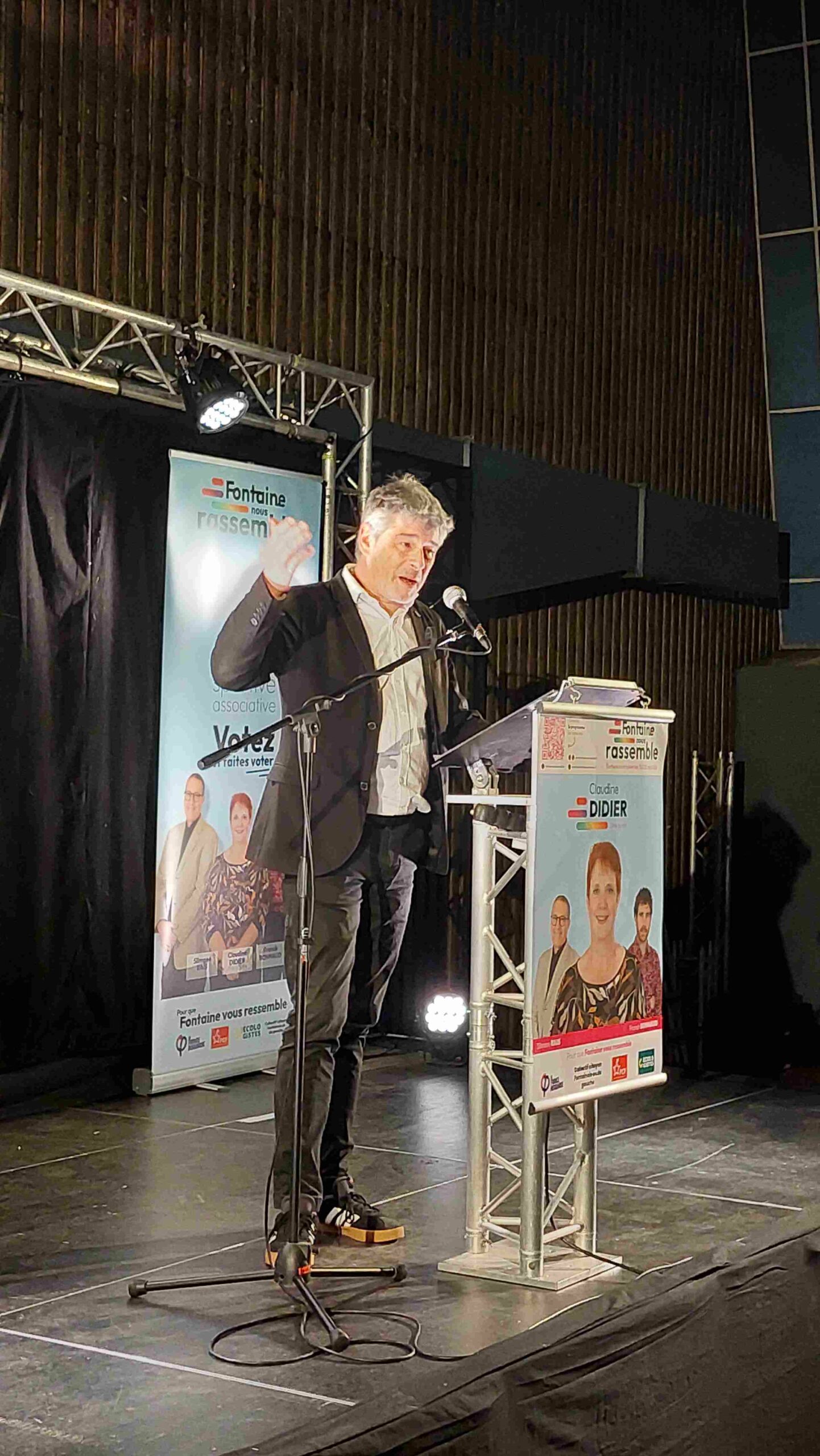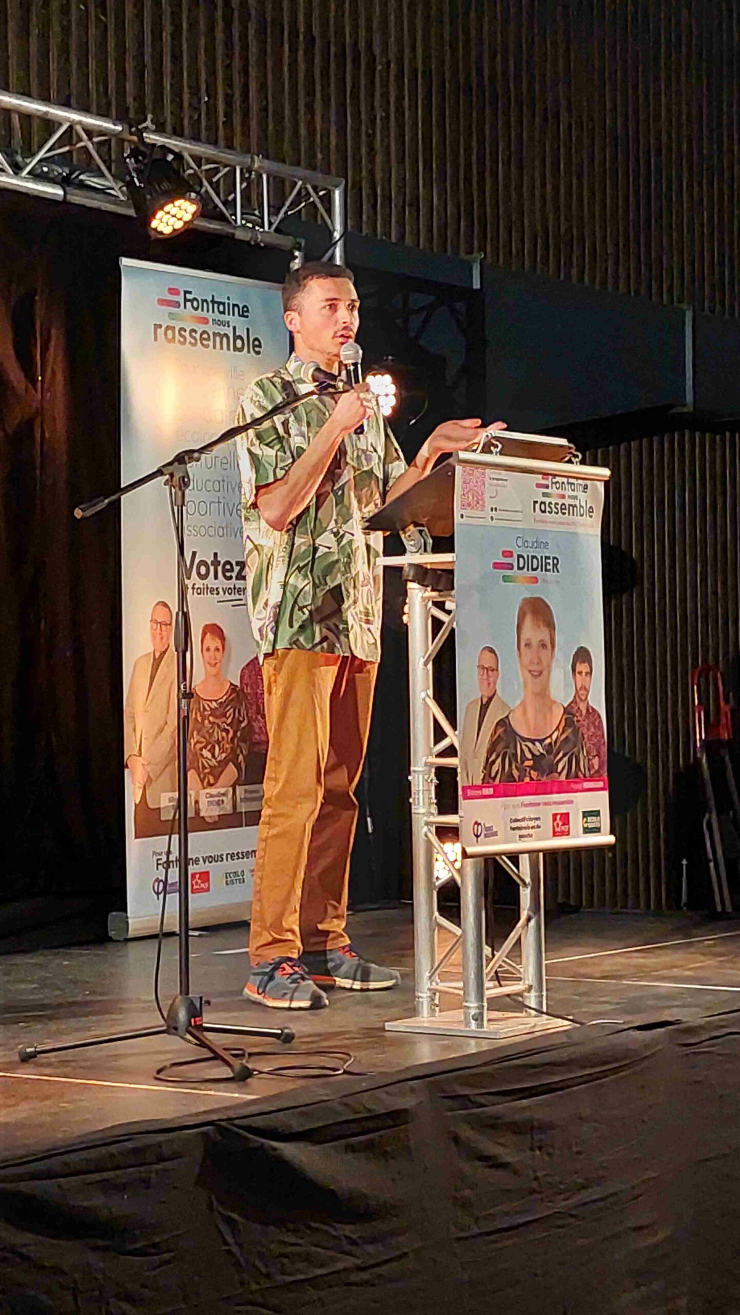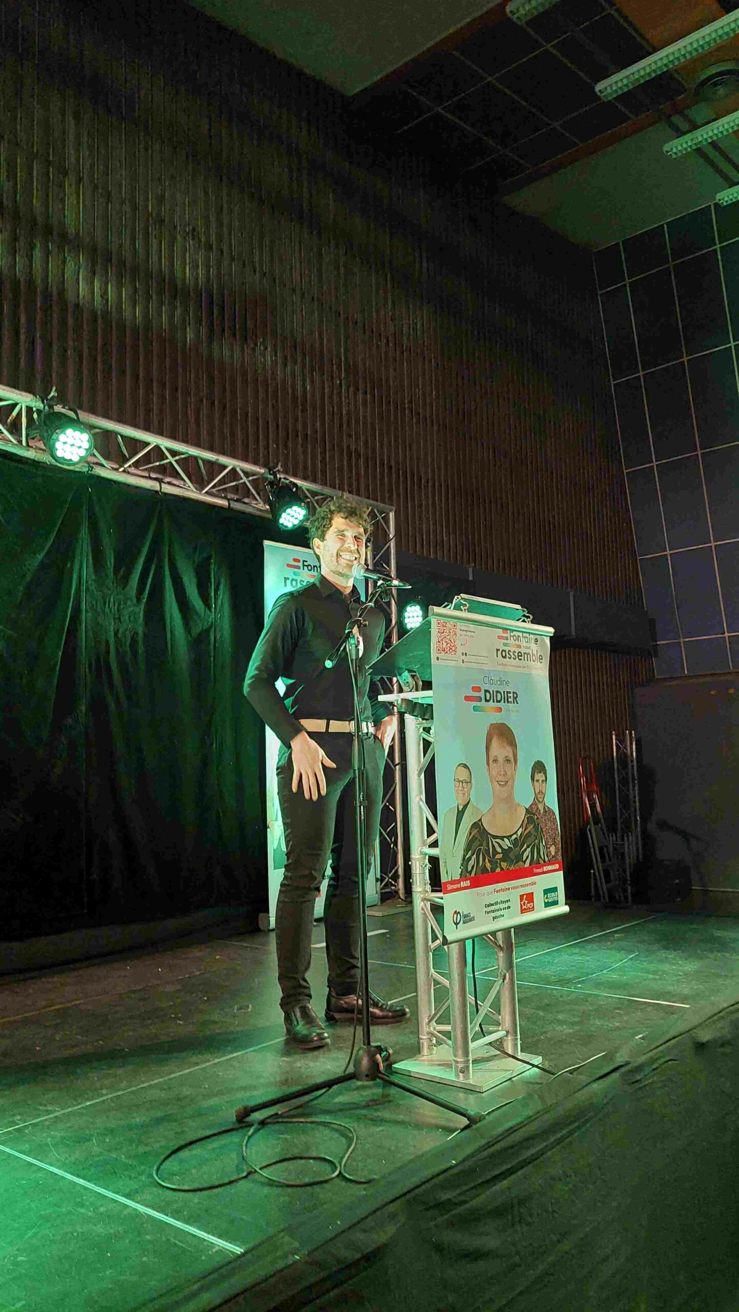Le public a ainsi pu alternativement écouter Adrimes, slamer fontainois, voir des vidéos ou écouter les prises de paroles de plusieurs soutiens à la liste comme Fabien Gay et Guillaume Gontard respectivement sénateurs communiste et écologiste, Élisa Martin députée La France Insoumise.