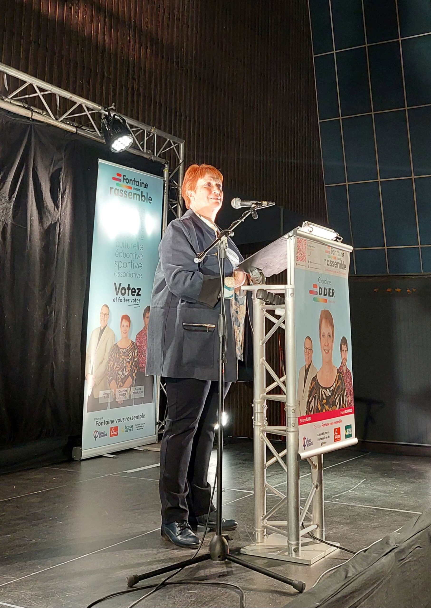 En tant que tête de liste, Claudine Didier a aussi souligné : « en cette avant-veille de la journée du 8 mars, journée internationale des droits des femmes, je suis la « tête de liste » pour Fontaine, soit LA Maire en devenir » ce qui serait une première à Fontaine en 132 ans.