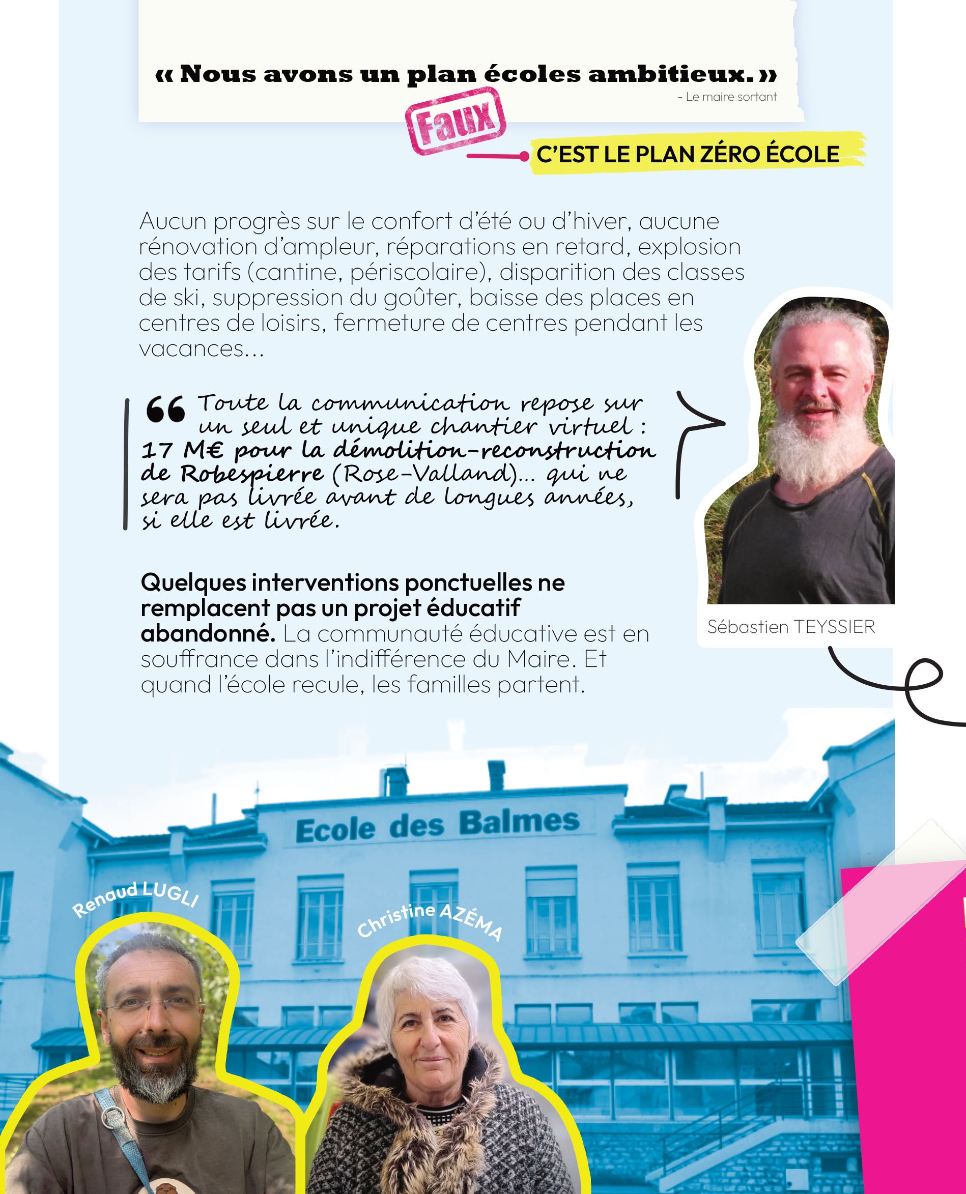 « Toute la communication, repose sur un seul et unique chantier virtuel : 17 Millions d’€ pour la démolition-reconstruction de Robespierre (Rose-Valland)… qui ne sera pas livré avant de longues années, si elle est livrée. »