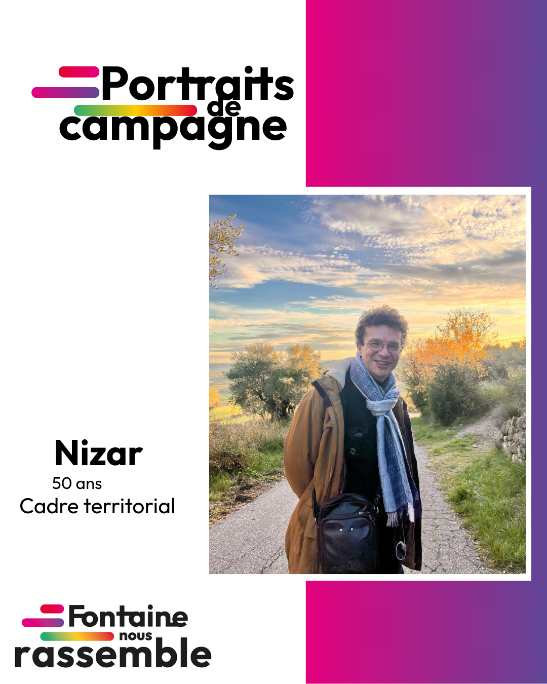 Portrait de campagne Nizar pour les élections municipales de Fontaine de mars 2026
