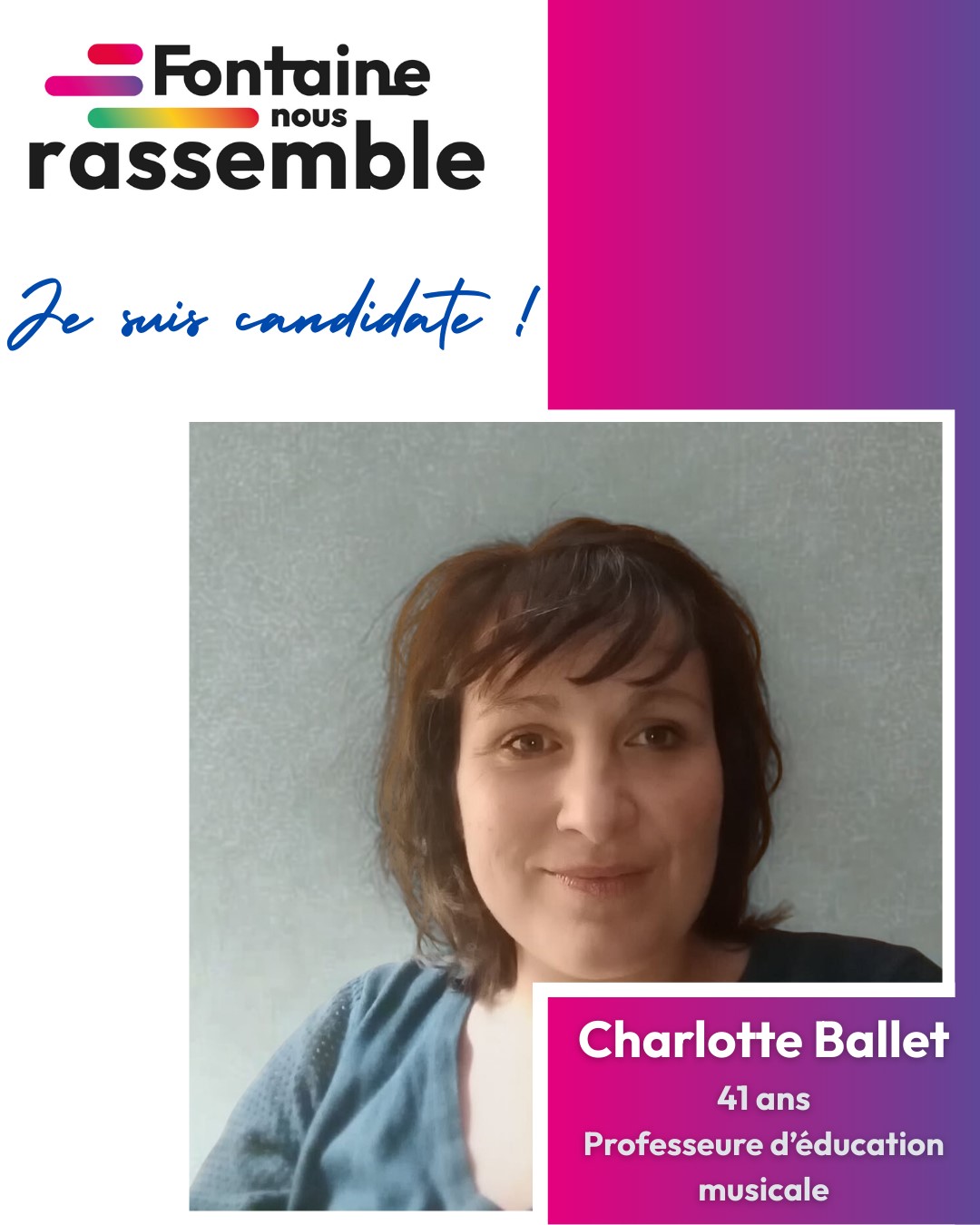 « Je m’appelle Charlotte, je suis prof en collège, j’ai deux enfants scolarisés à l’Ecole Anatole France. Je suis arrivée à Fontaine et en Isère pour le travail il y a bientôt dix ans. J’ai rapidement participé à une grève victorieuse de plusieurs semaines sur mon lieu de travail. Cela m’a appris qu’un collectif déterminé et organisé peut gagner des moyens pour mieux fonctionner.
